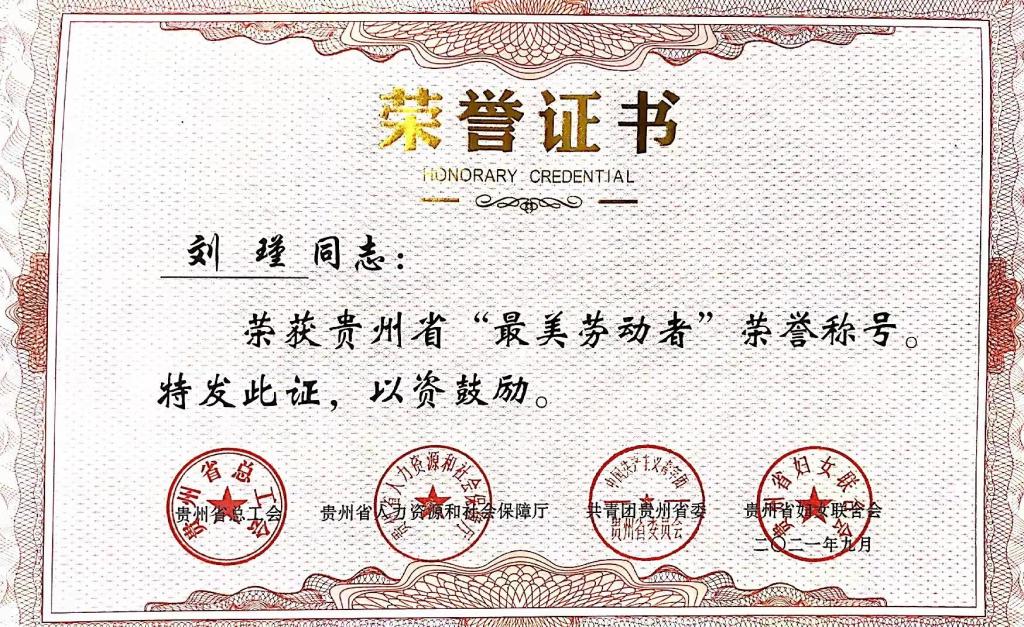 近日,贵州省总工会、贵州省人力资源和社会保障厅、共青团贵州省委员会、贵州省妇女联合会联合下发了《关于命名贵州省“最美劳动者”进行联名表彰》的通知,对全省“最美劳动者”进行联名表彰。我校文学院颜同林、外国语学院(大学外语教学部)刘瑾、化学与材料科学学院许亮、机械与电气工程学院廖文群、山地重点实验室李秋华、国有资产管理处薛风超、后勤服务集团王云妹等7位同志荣获贵州省“最美劳动者”称号。